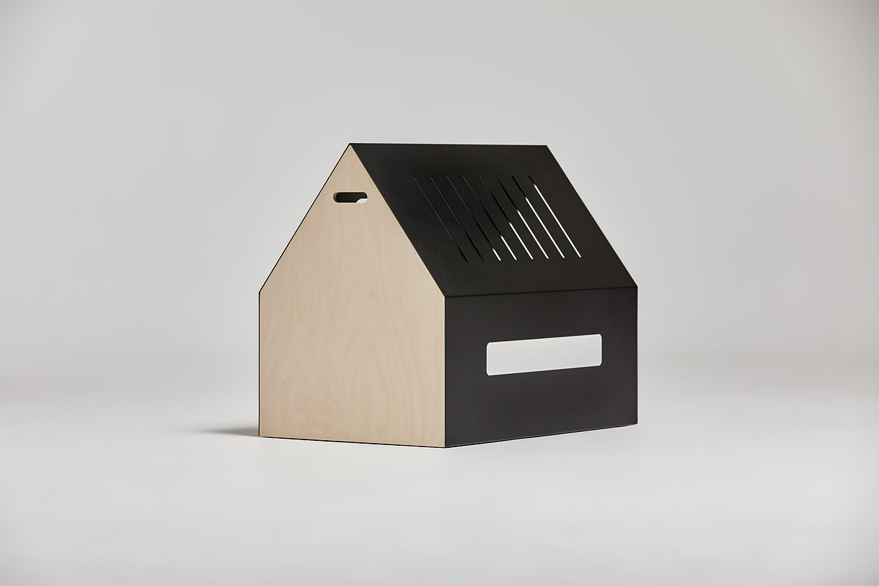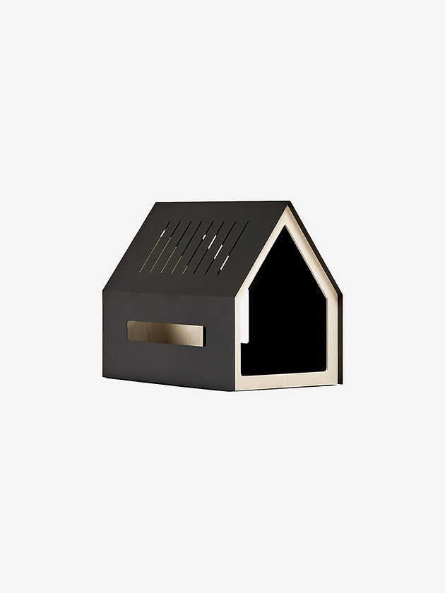 Домик для котиков и собачек Barn Black от BUSYA Home — это минималистичное пространство отдыха для питомцев в глубокой, спокойной эстетике. Лаконичная геометрия корпуса сочетает прочность металлического каркаса и выразительную фактуру тёмной фанеры, создавая современный и стильный акцент в интерьере.